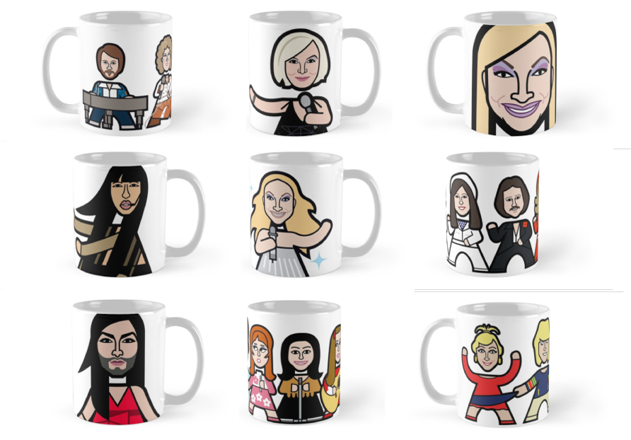 Eurovision Minipops Mugs - To buy at http://www.redbubble.com/people/minipopicons/shop/mugs?ref=portfolio_product_refinement