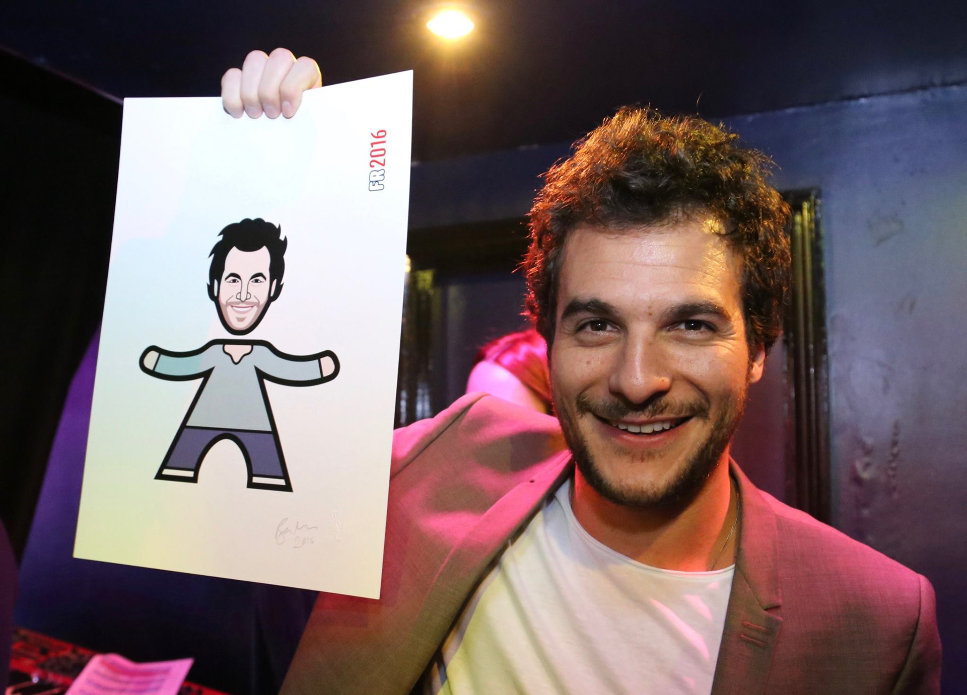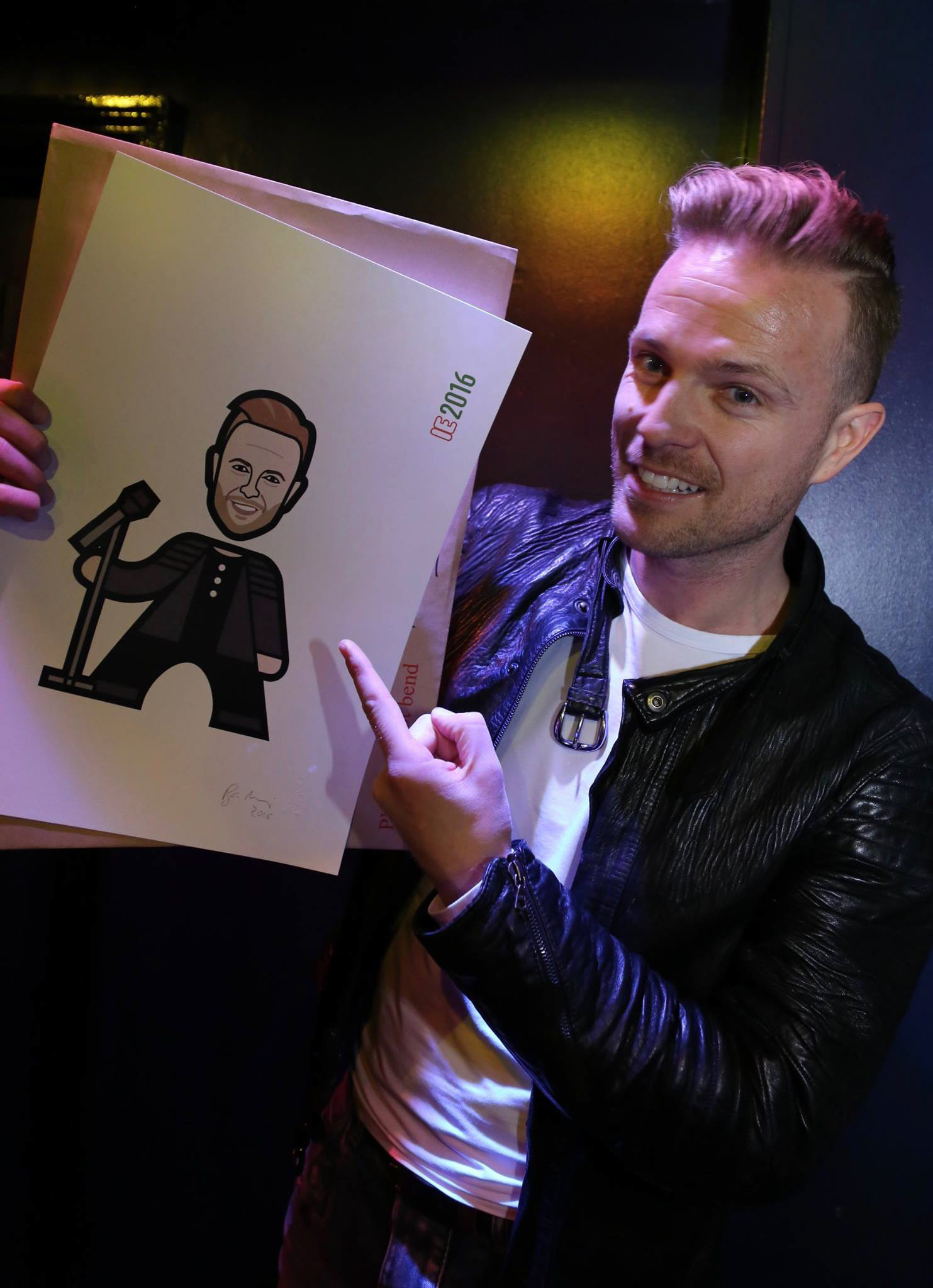 Ex-Westlifer Nicky Byrne with a print of his Europops icon at the London Eurovision preview event.