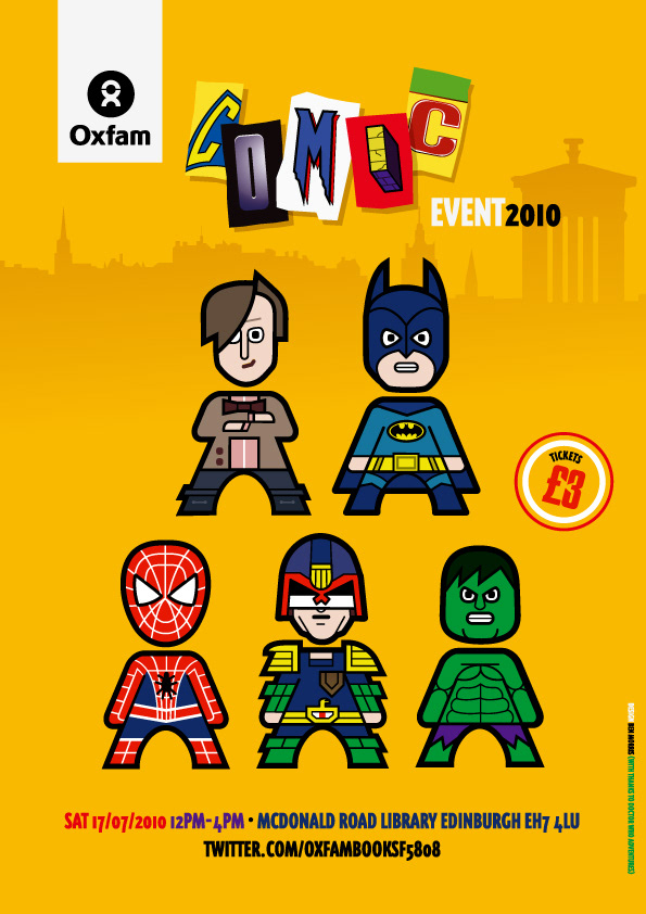 Poster for Oxfam Comic Event, Edinburgh 2010.